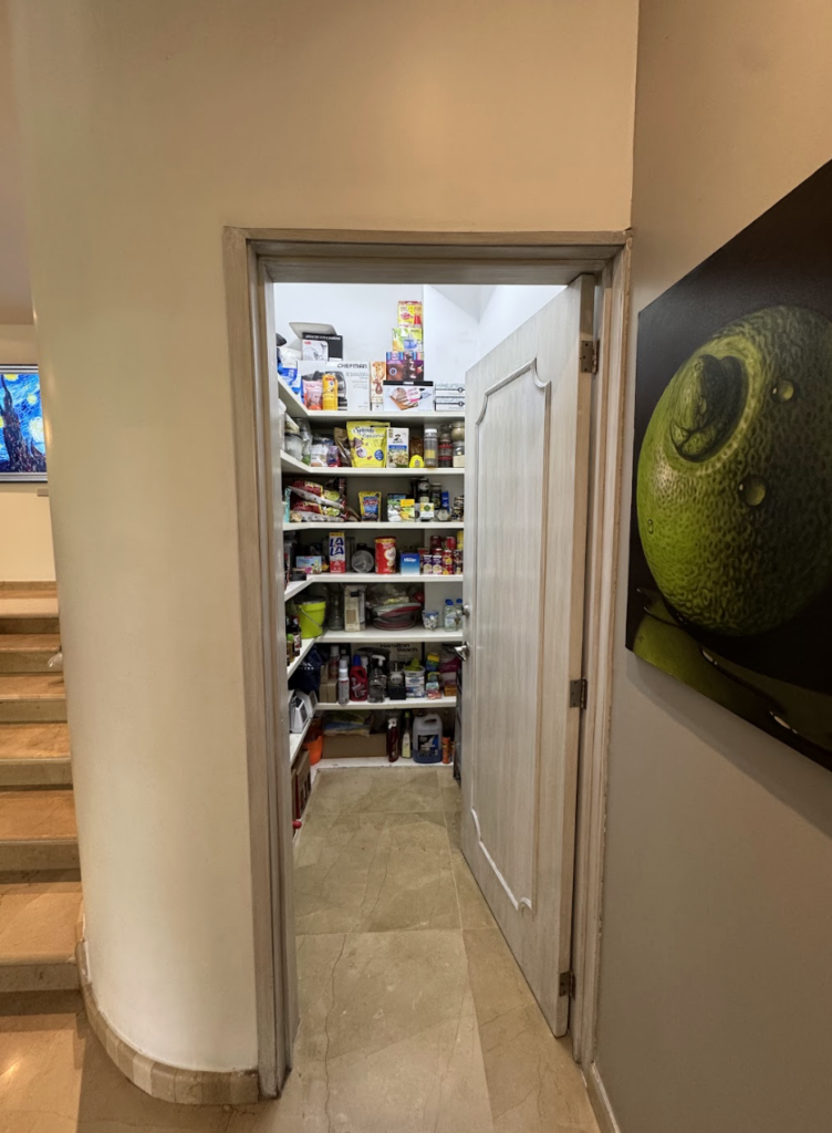 Bodega de 12 mts2 con racks de almacenamiento.